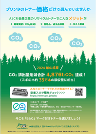 この度、2024年1年間でAJCR会員企業のリサイクルトナーをご利用いただいた結果、削減できたCO2の算出を試みました。